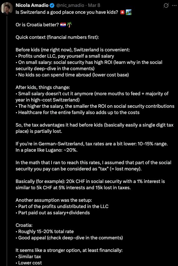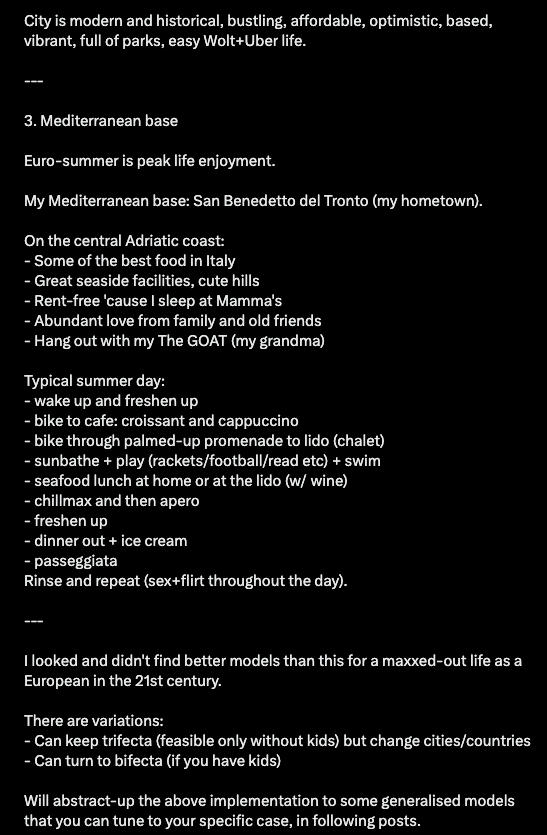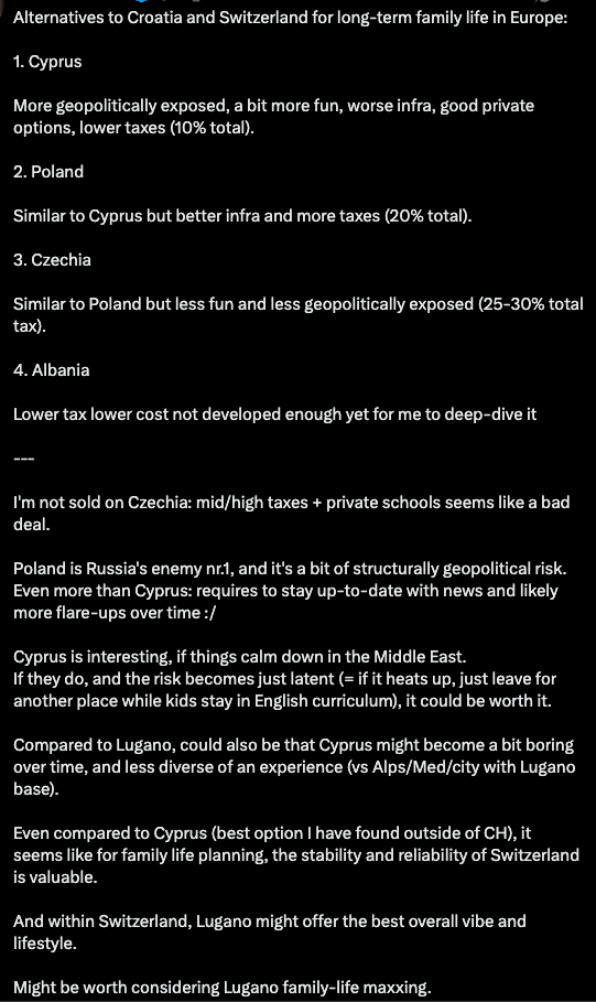 I’m constantly iterating on various setups that are possible in Europe, best countries to live, to spend some time, to go on holiday.