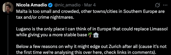 In the past, I invested in real estate in Portugal but then got out of it, also because it was too annoying having to manage it while living in Switzerland.